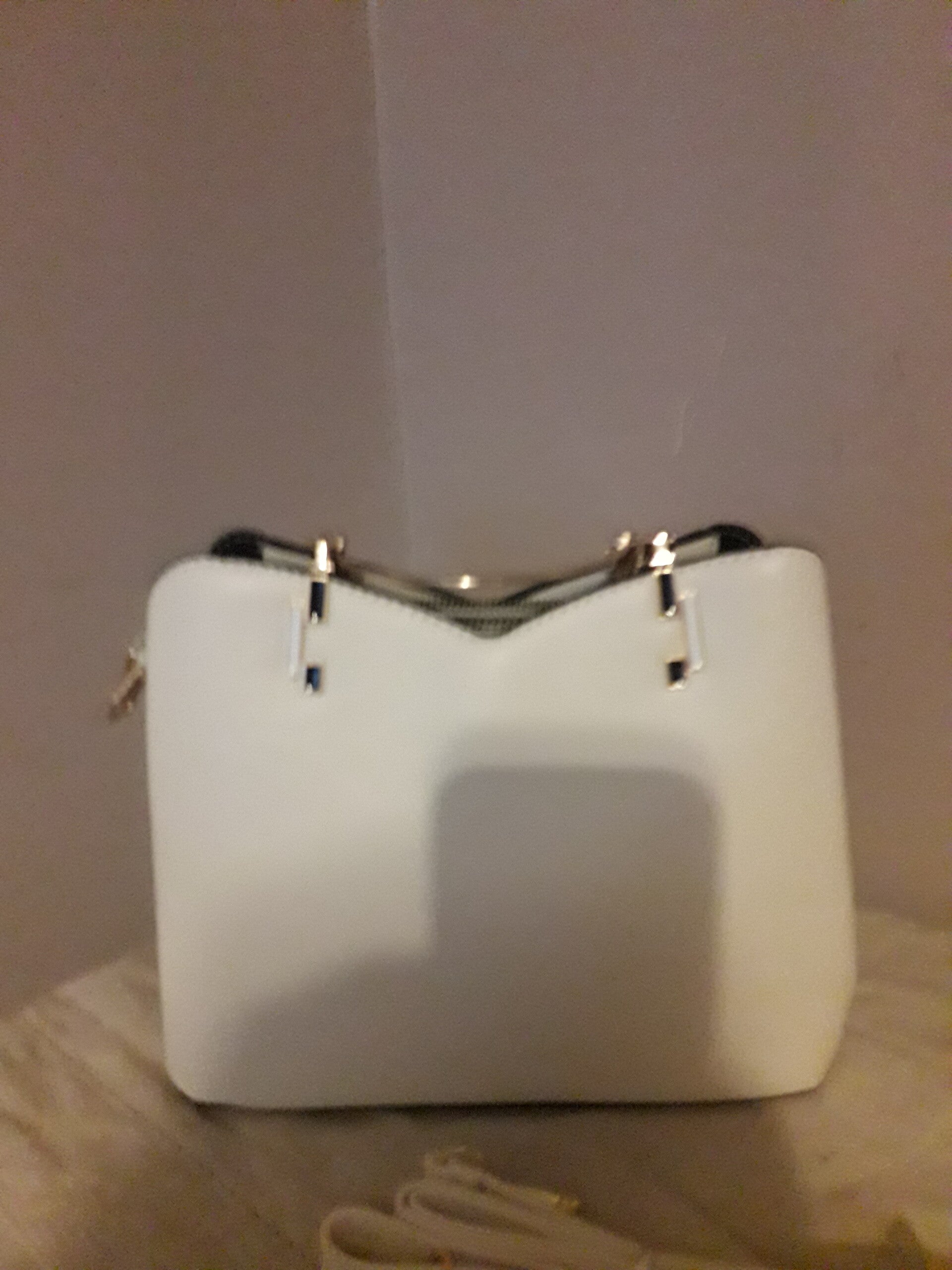 Zzmy ladies new bag packaging in metal handles burgundy white white strap with shoulder ir round body zip up n zip up pocket inside.