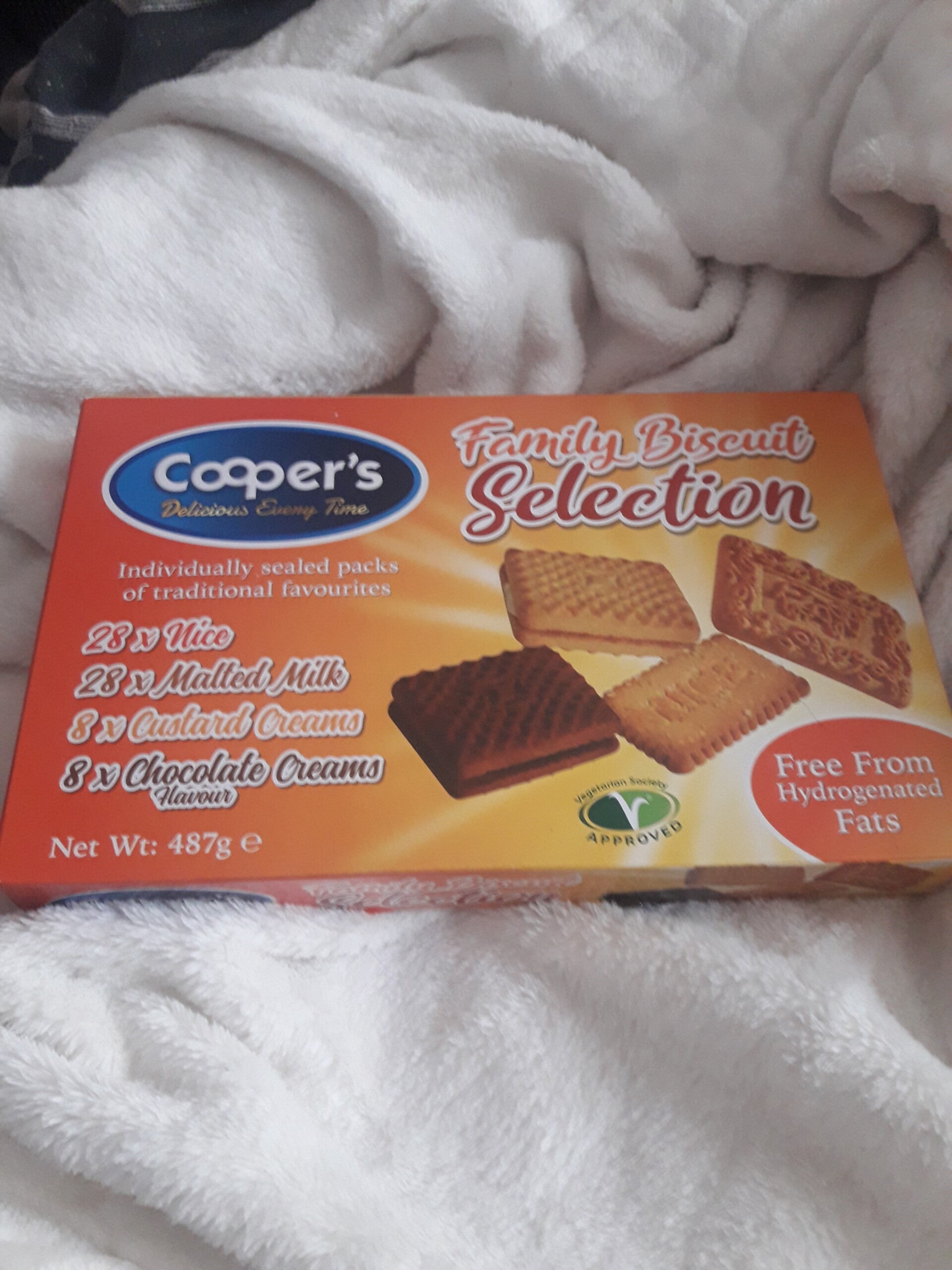 Family biscuit selection 28 nice,28 malted milk,8 custard creams,7 chocolate creams.