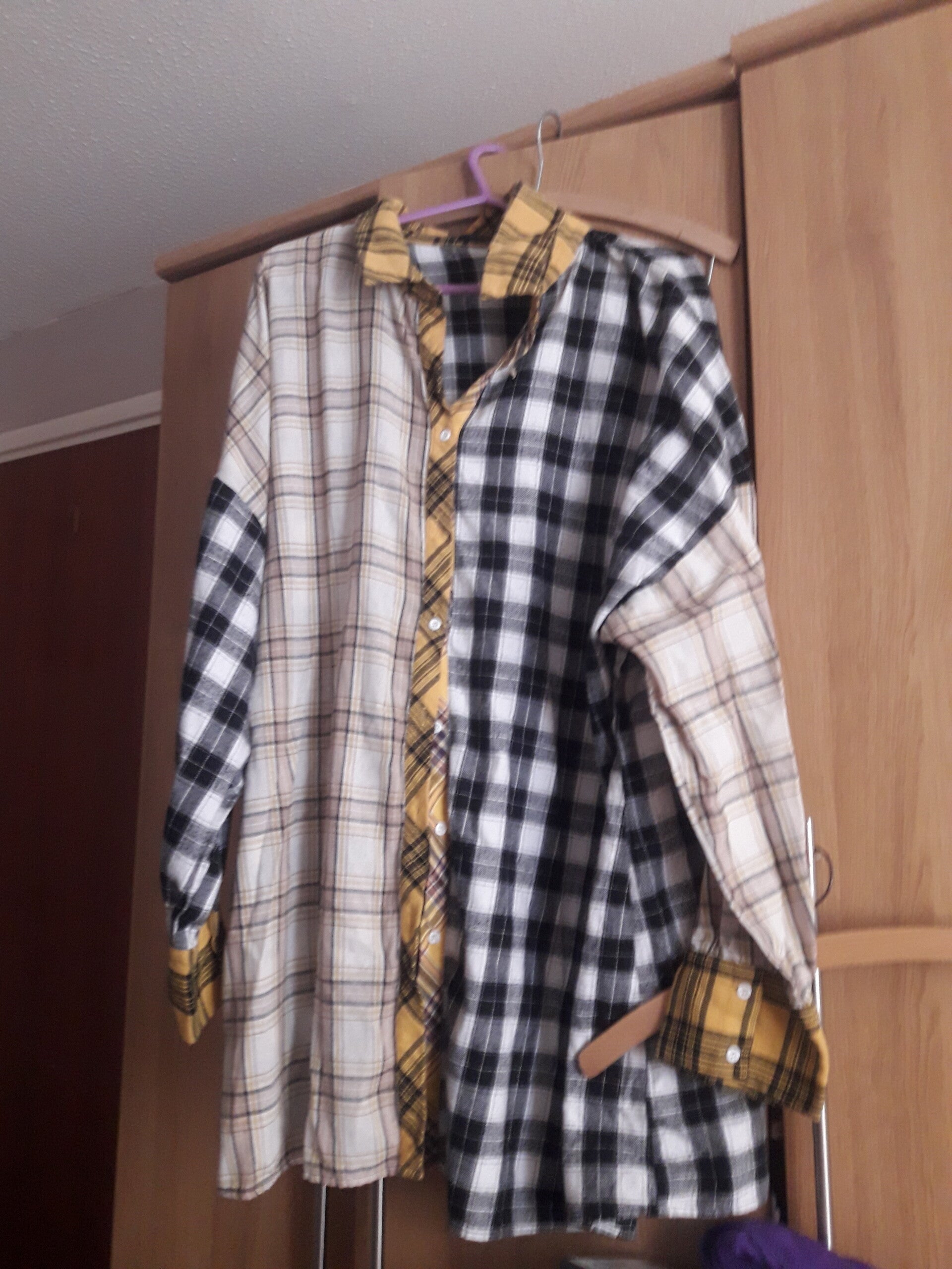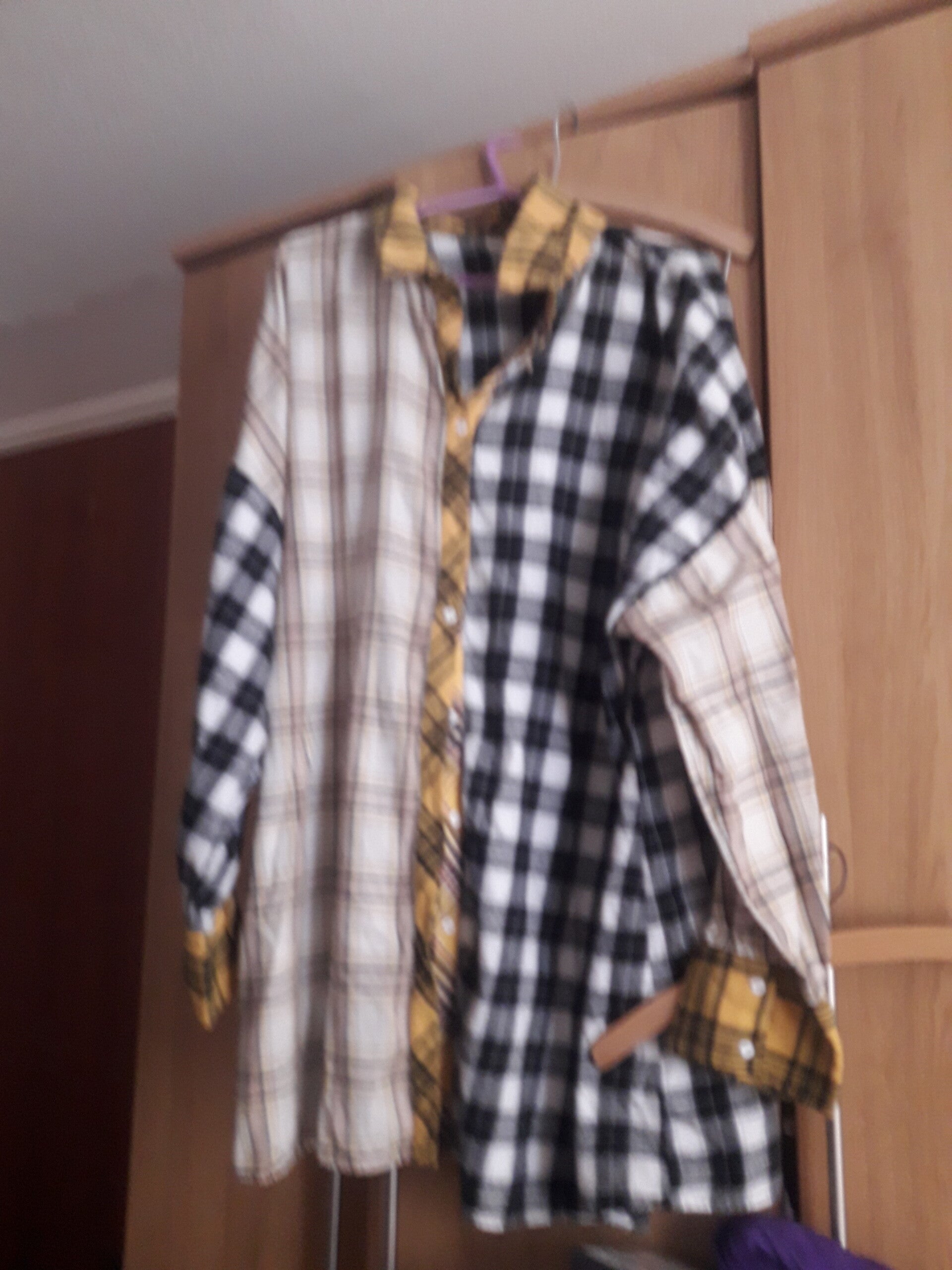 4xlarge ladies shirt used vgc yellow black white check long sleeves collar buttons 32 inch length.material cotton polyester