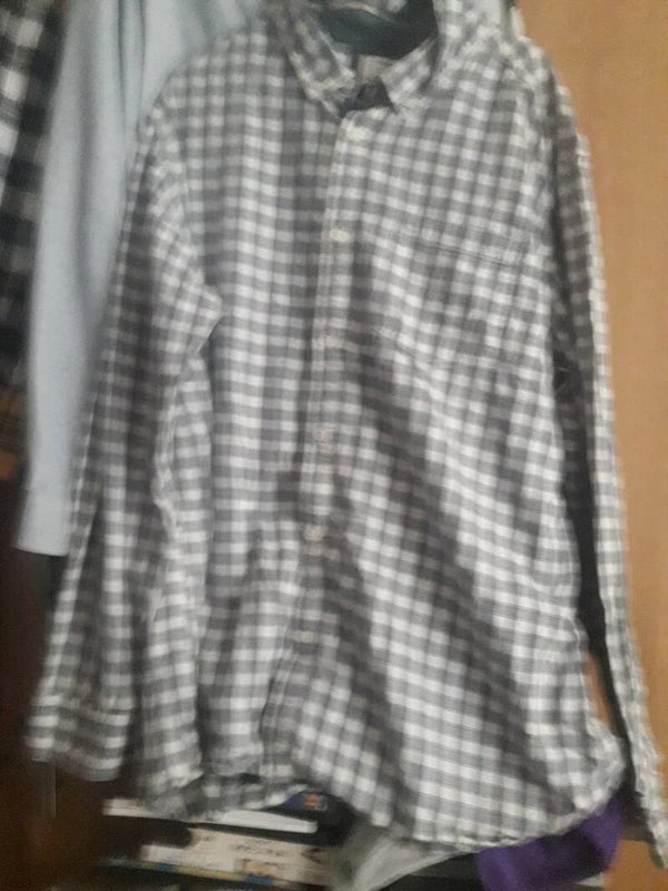 X large mans shirt grey white checked pocket button down collar button down long sleeves second hand used vgc.Material,cotton.