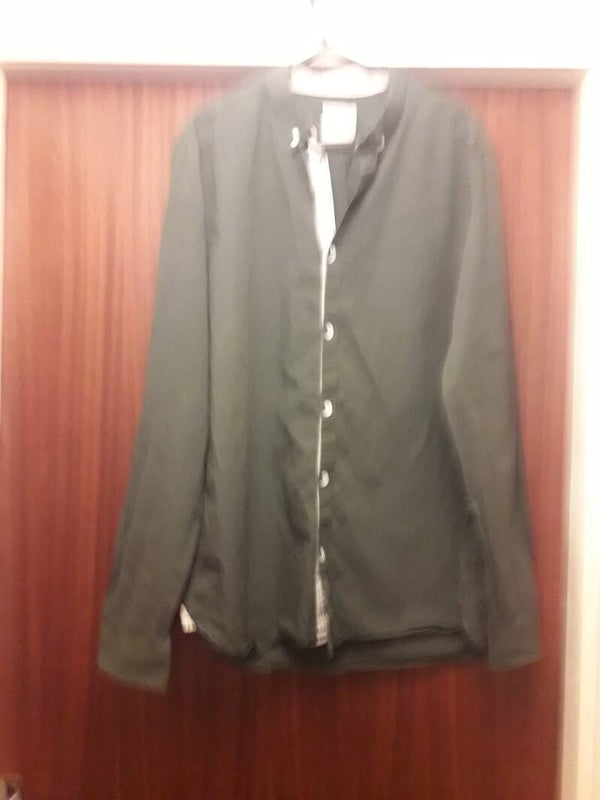 Dark green n white striped bit inside long sleeves button down ,button down collar .vgc used