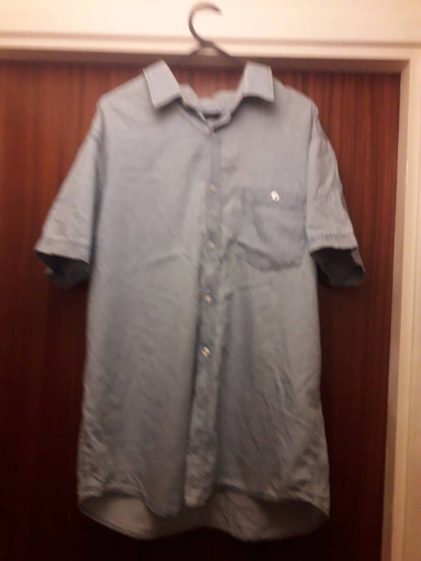 Light blue with pocket buttons down short sleeves vgc used ,cotton.