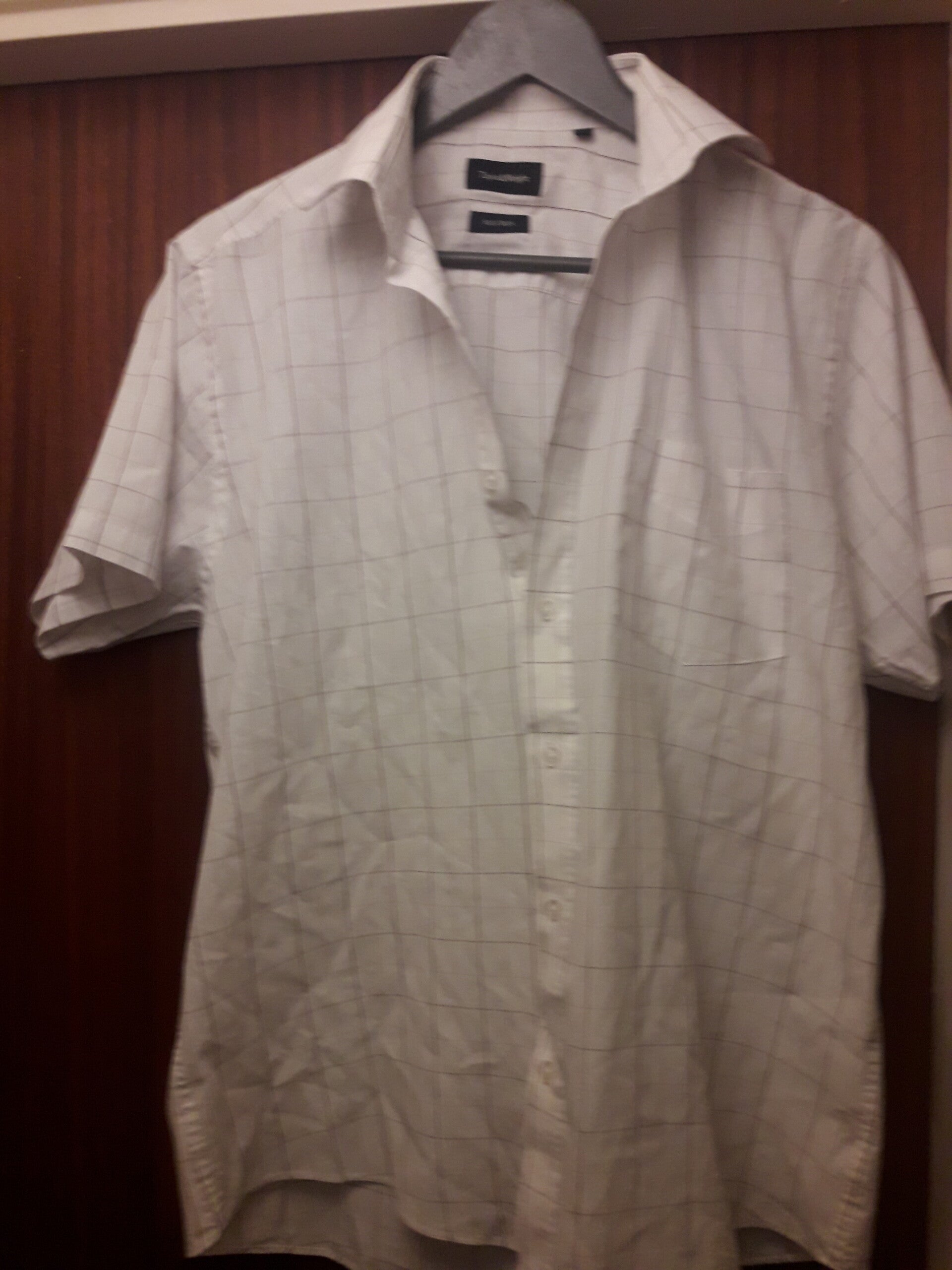 White n brown check shirt used vgc pocket short sleeves cotton.
