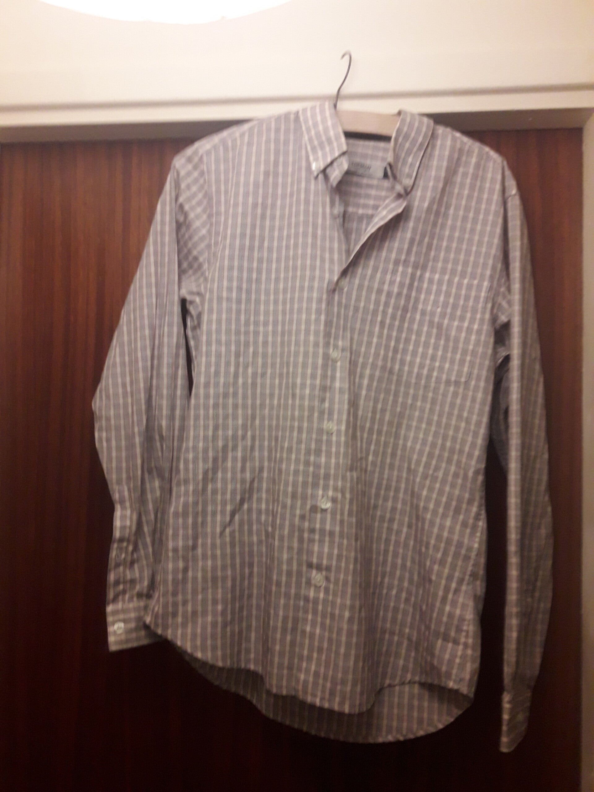 Red blue white check long sleeves button down collar pocket vgc used cotton.
