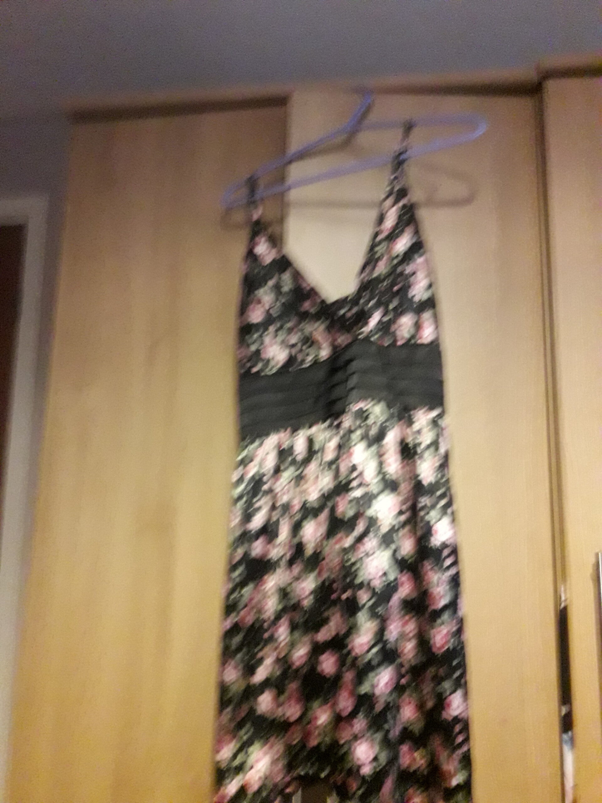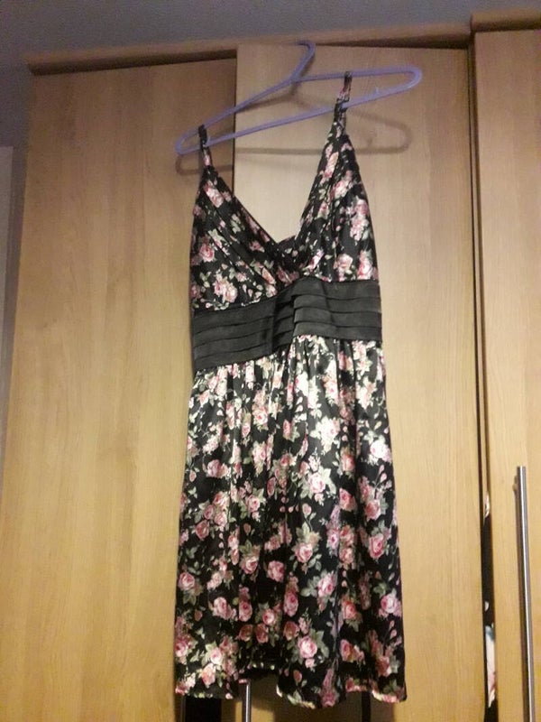 Floral straps lined pink black green vgc used elasticated back,