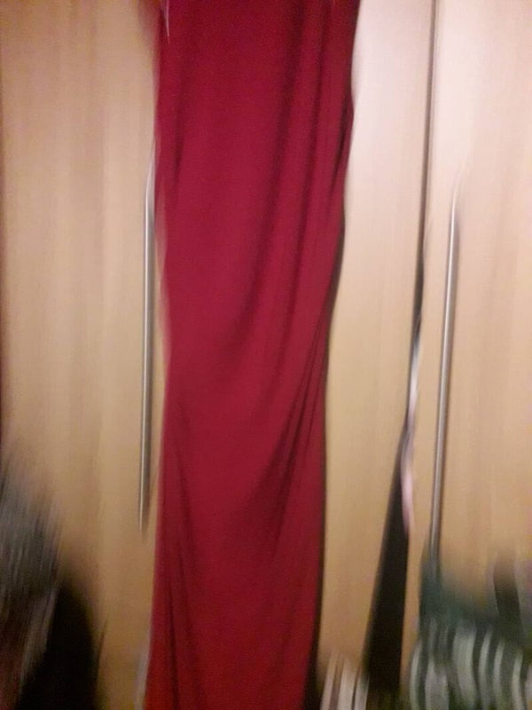 Red dress from klass size 10 long sleeveless length 58 inch material nylon polyester vgc used