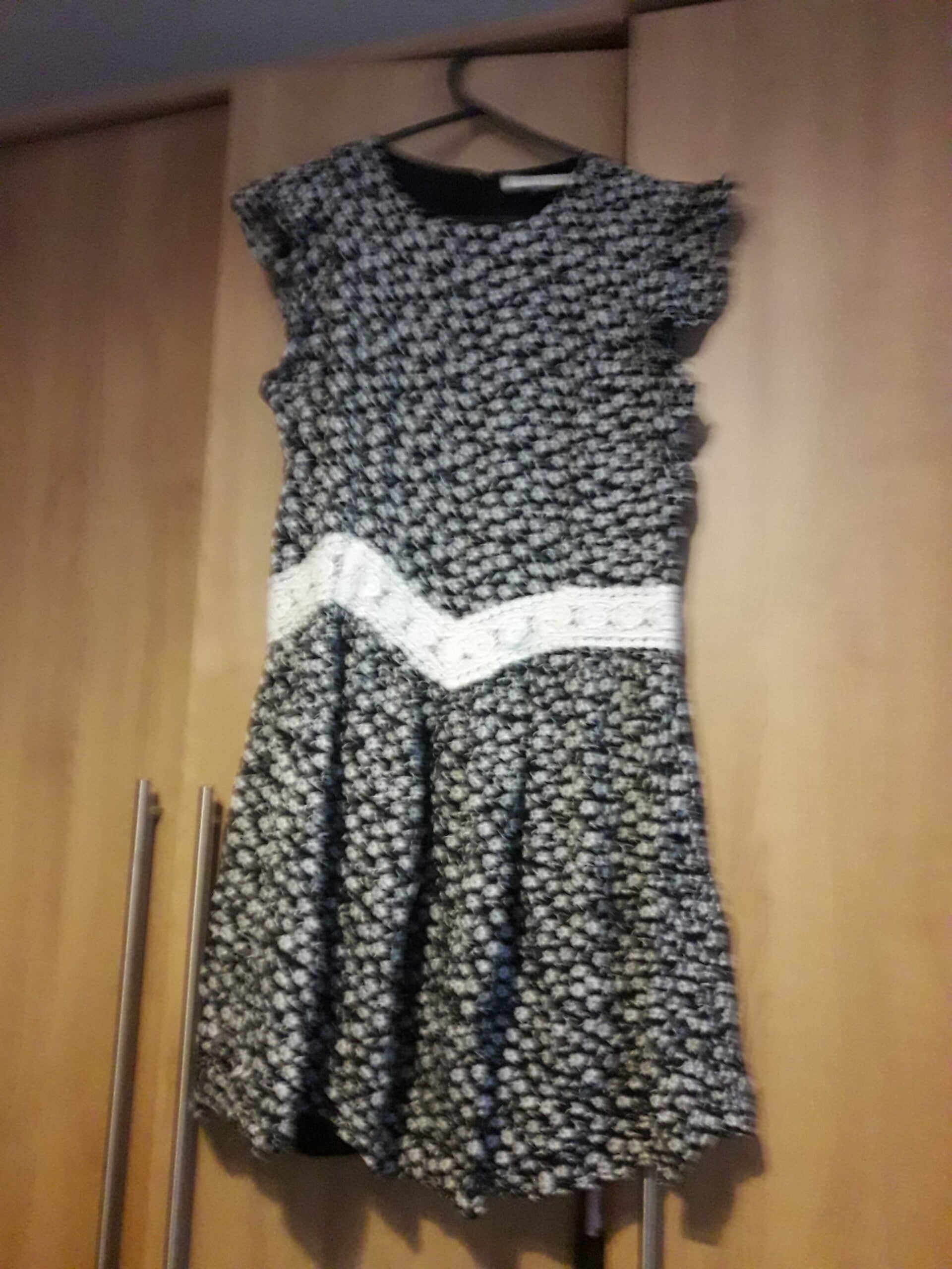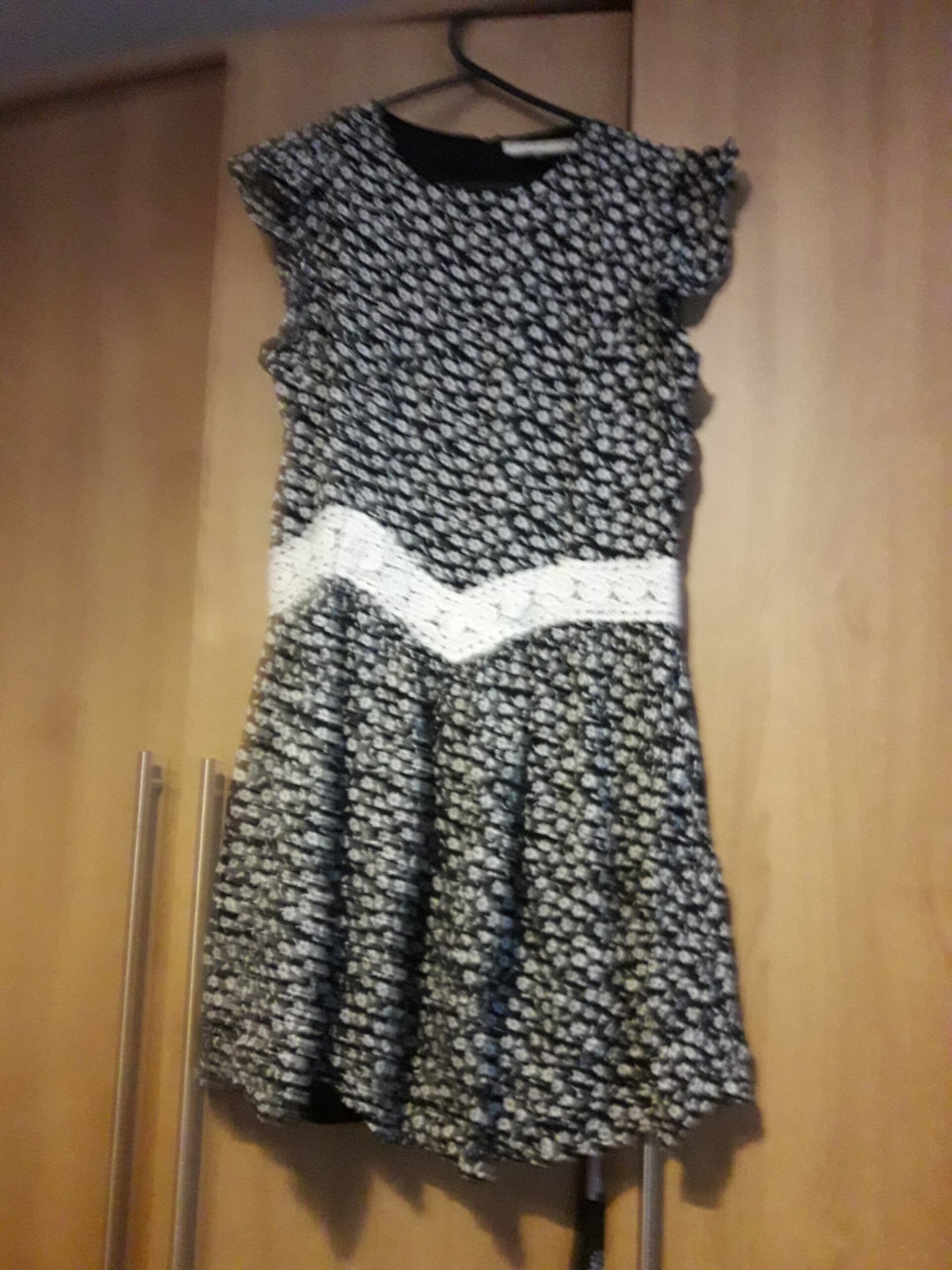 Ladies dress black white floral crochet waist lin ed vgc used,sleeveless,