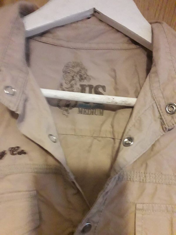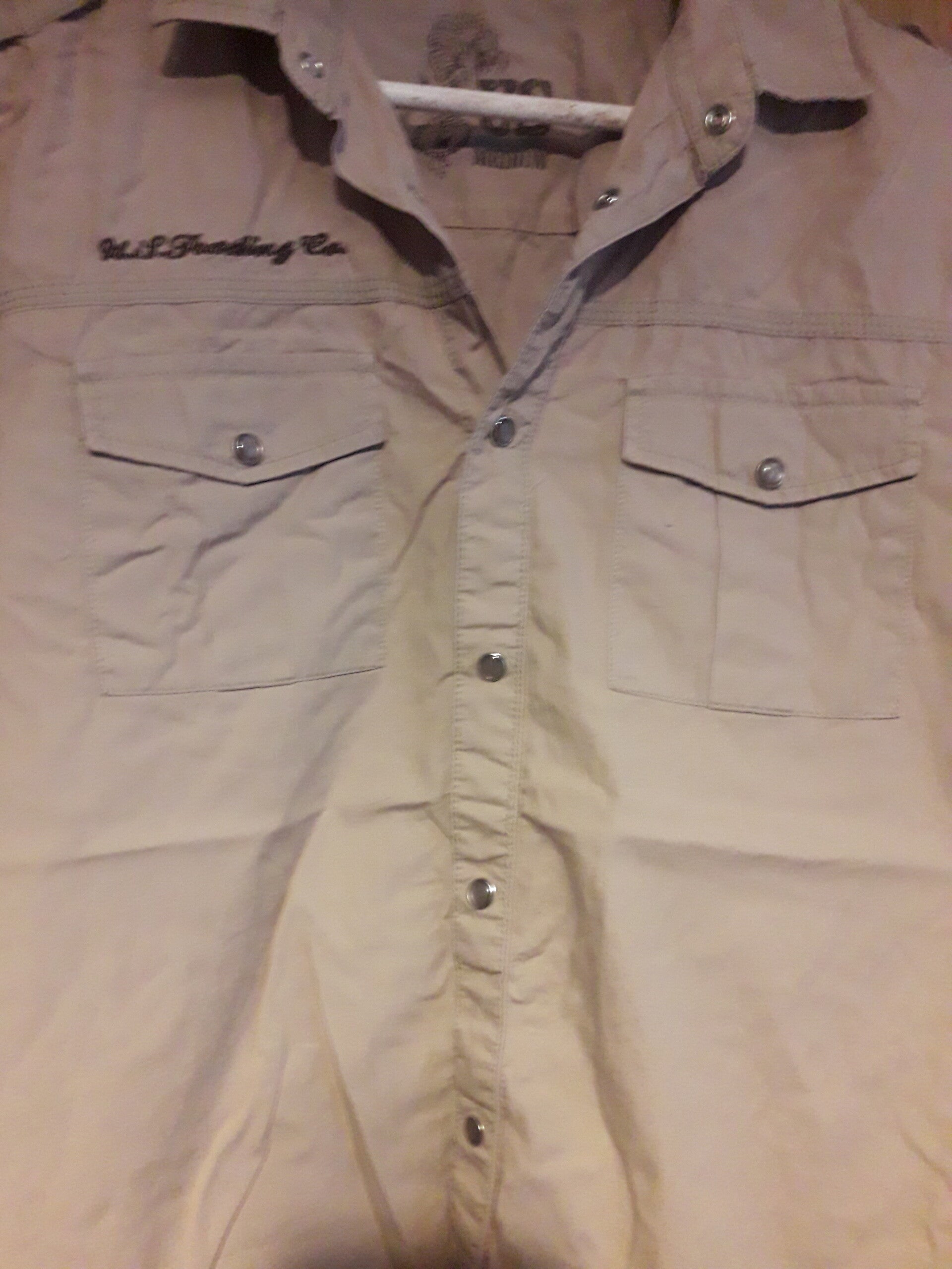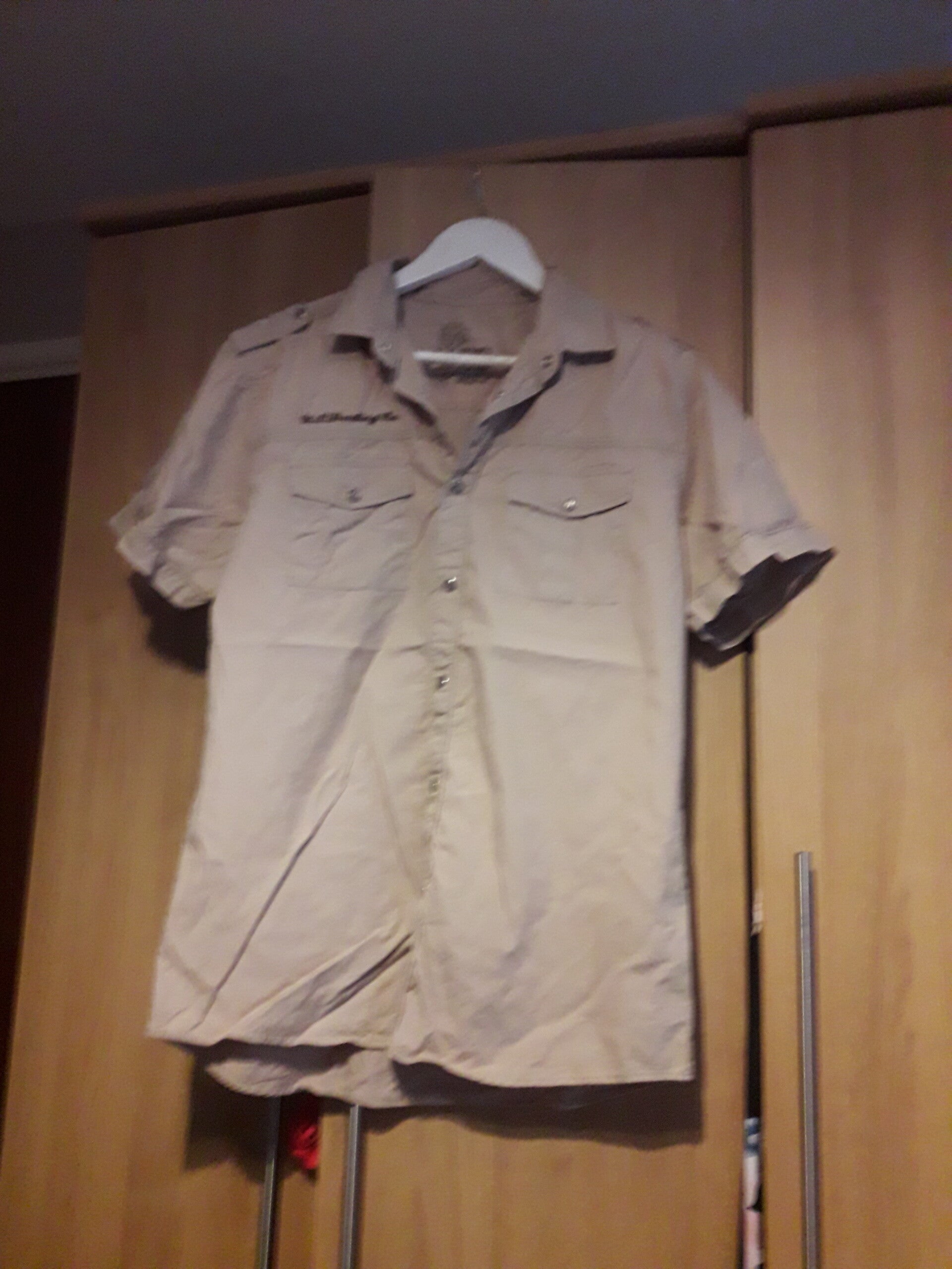 Beige shirt short sleeves pockets poppers for buttons vgc used
