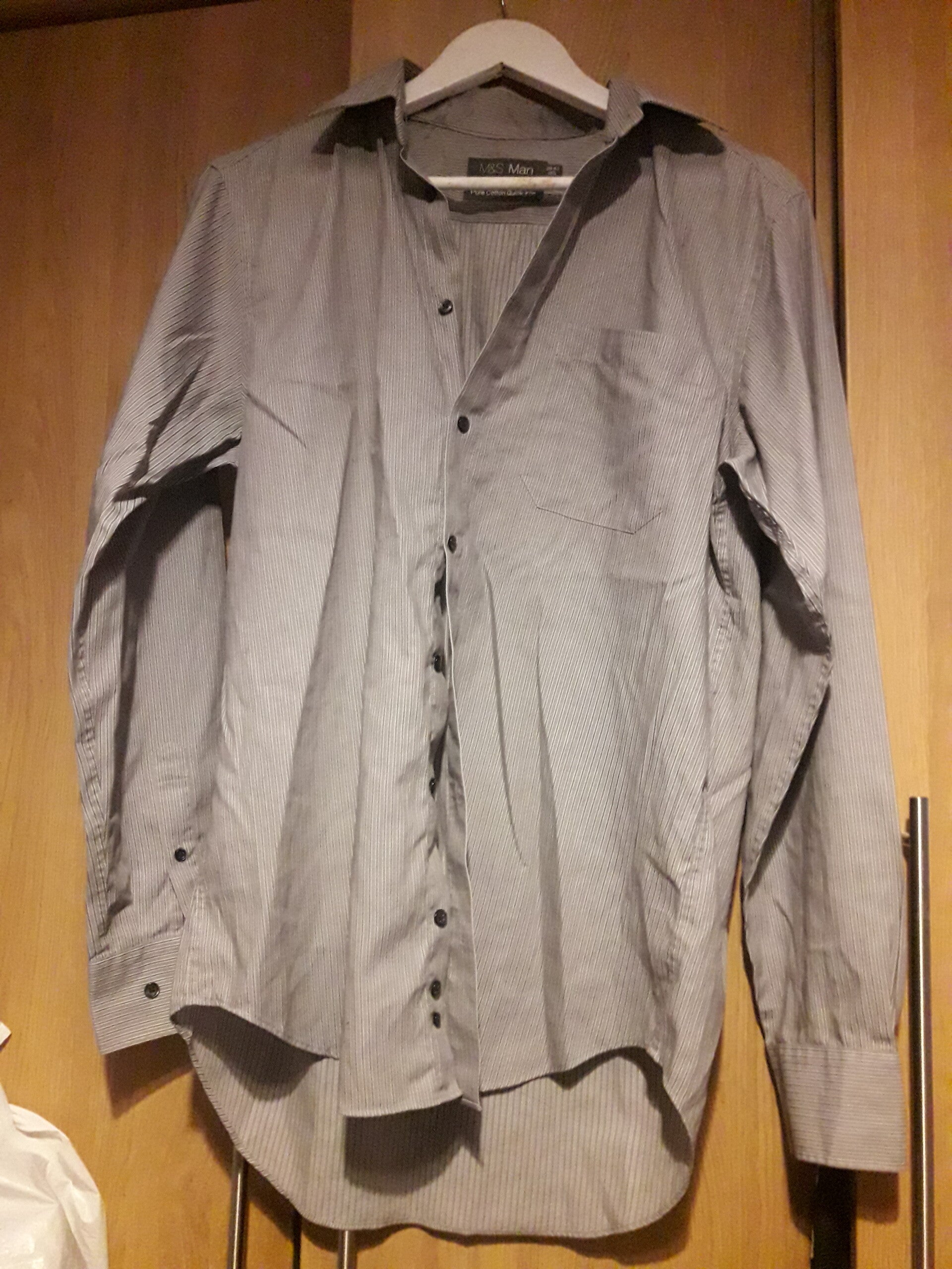 Grey mans shirt long sleeves,grey white striped ,pocket, cotton.vgc used.