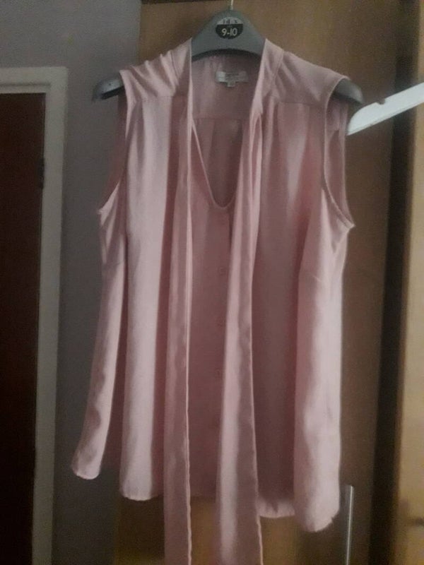 Light pink blouse like top tie sleeveless vgc used size 10. Material polyester.length 25.