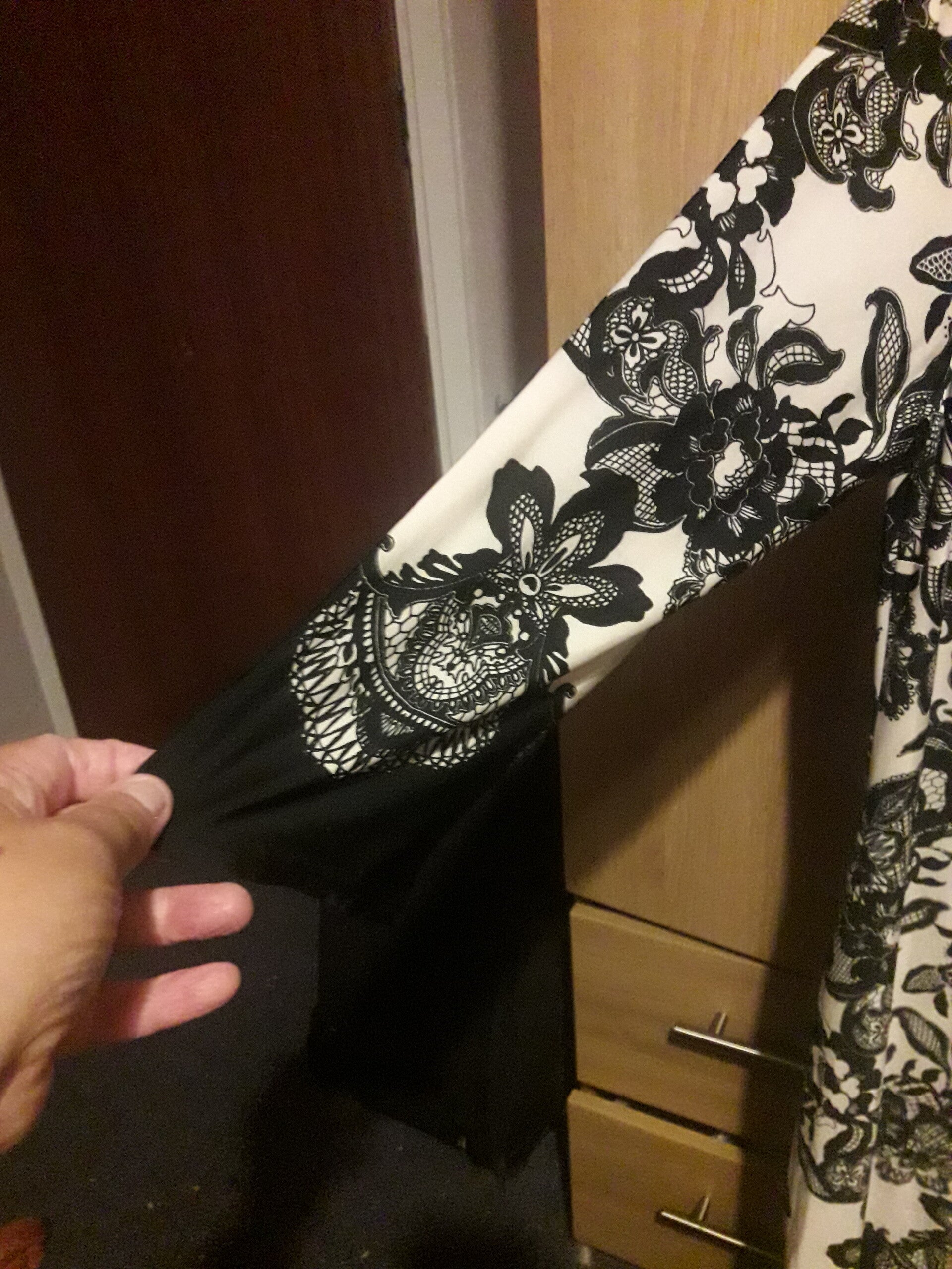 Atmosphere dress size 14 floral vgc used slim sleeves 3 quarter cream n black floral, unlined.midi dress .