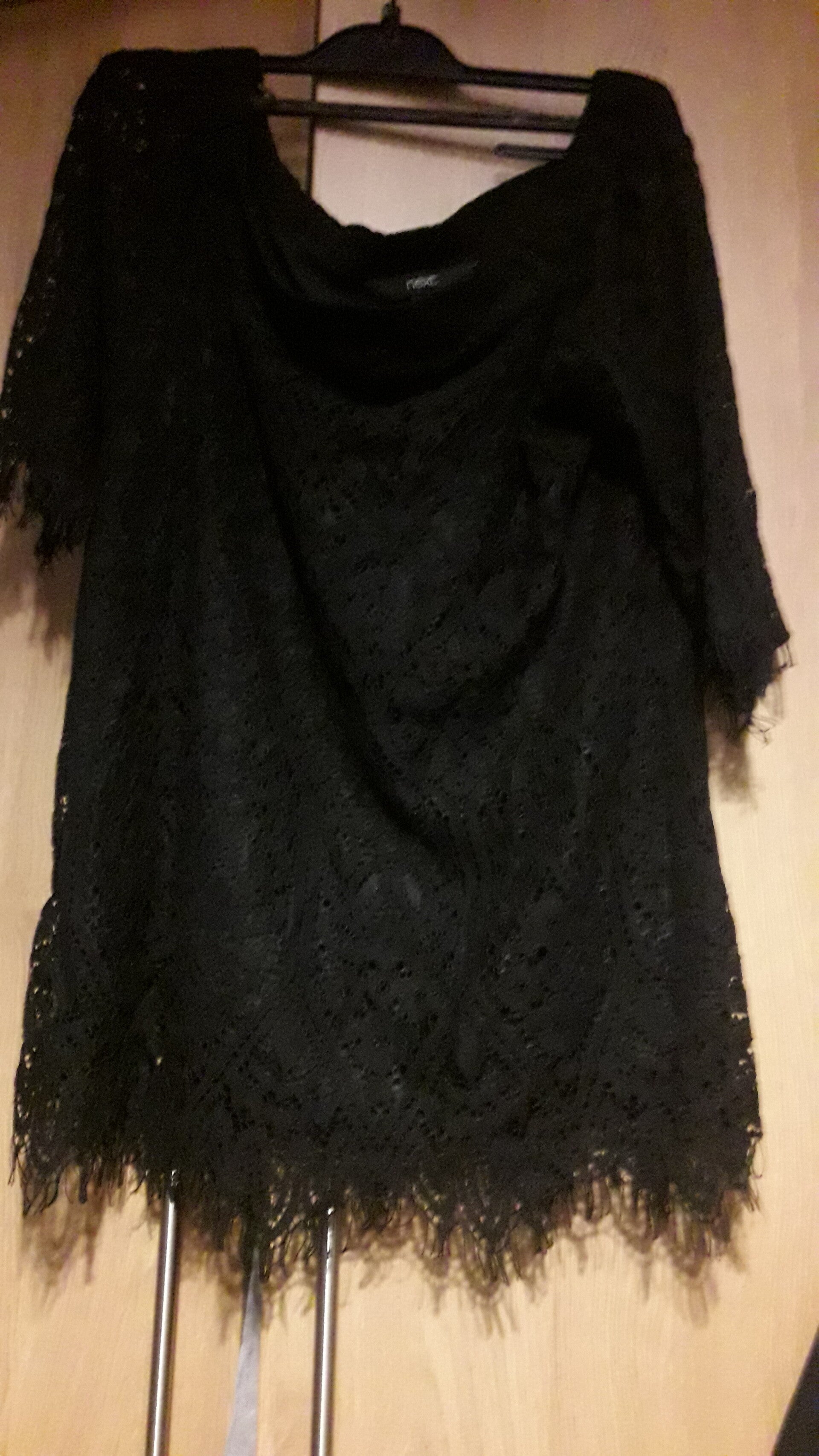 Next used black lacy top short sleeves vgc,frayed look at sleeves n bottom,size 10.lined.floral.om n off shoulders.