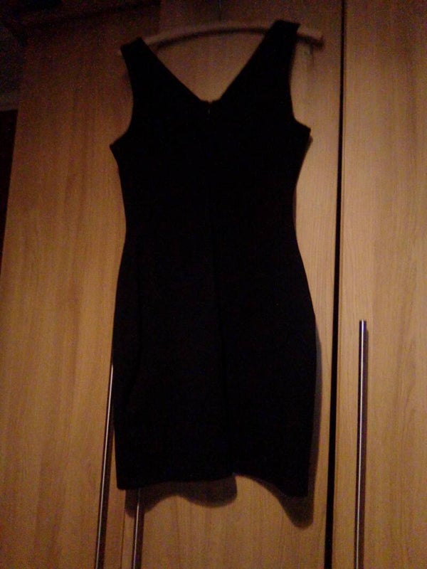Vgc used peacocks dress size 12 white n black sleeveless dress midi v neck unlined.length 34 inch.