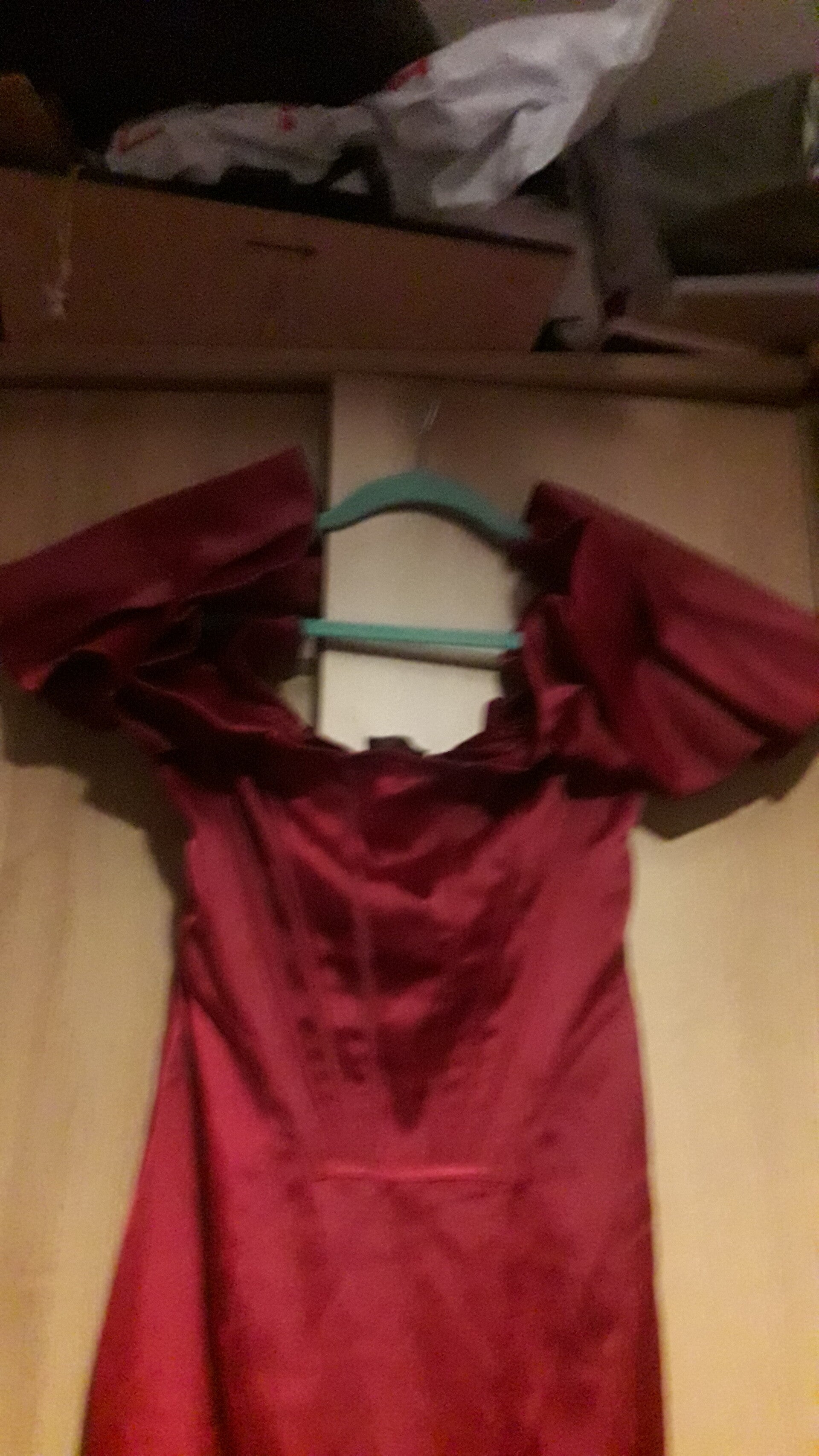 Top or mini dress from pretty little thing vgc used size 8, frilly top part unlined ties at back,pull on top or small dress dark red .length 31 inch.