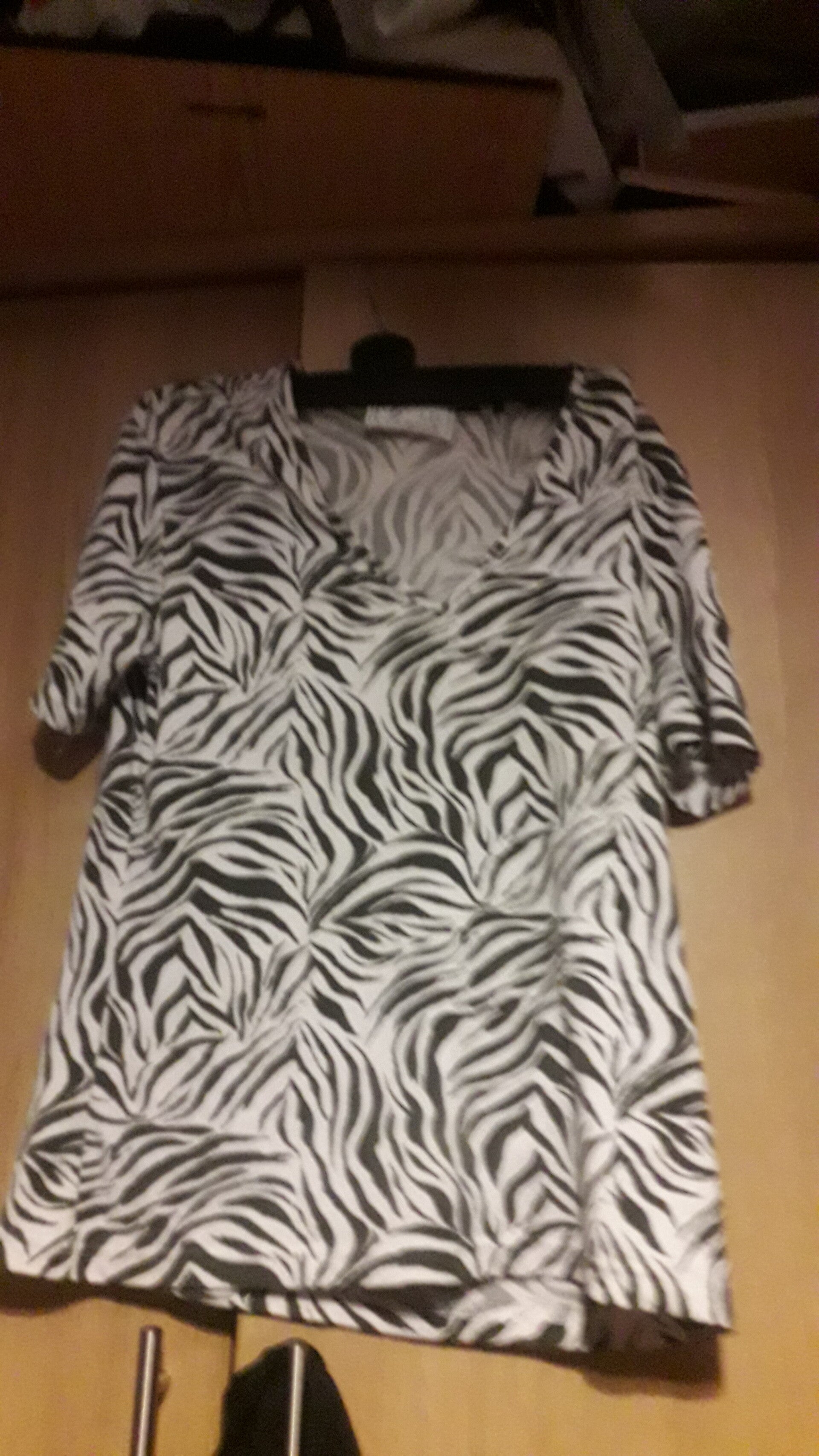 Black n white print ladies tshirt,vgc used v neck short sleeves,size 10, length 22.
