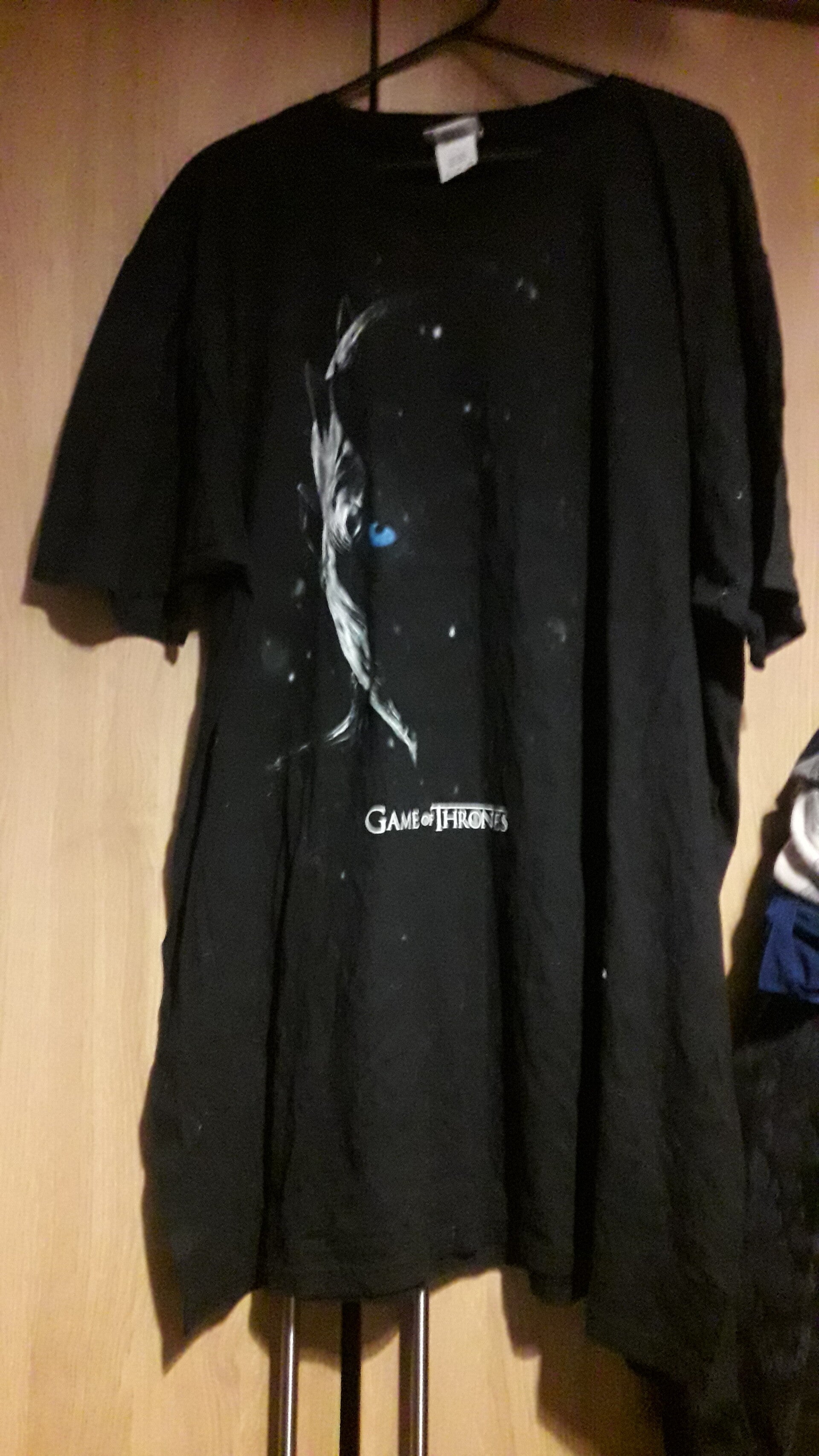 Vgc used mans game of thrones tshirt, black, long tshirt with face on n game of thrones on it from. gildan.cotton, length 33 inch.2xlarge size.
