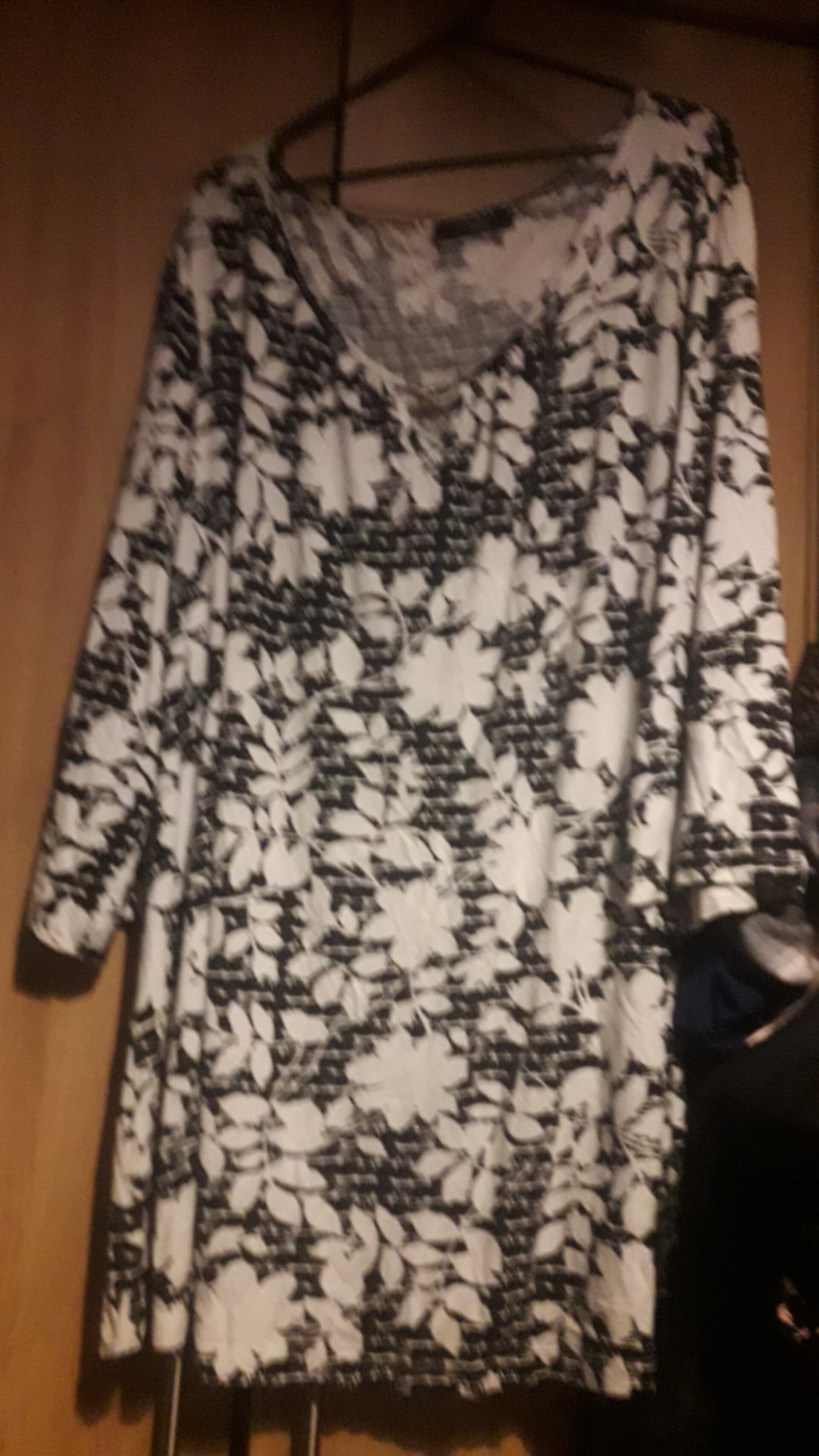 Vgc used moda top from george, size 24,white and black floral , 3 quarter sleeves,pull on top , length 32 inch.