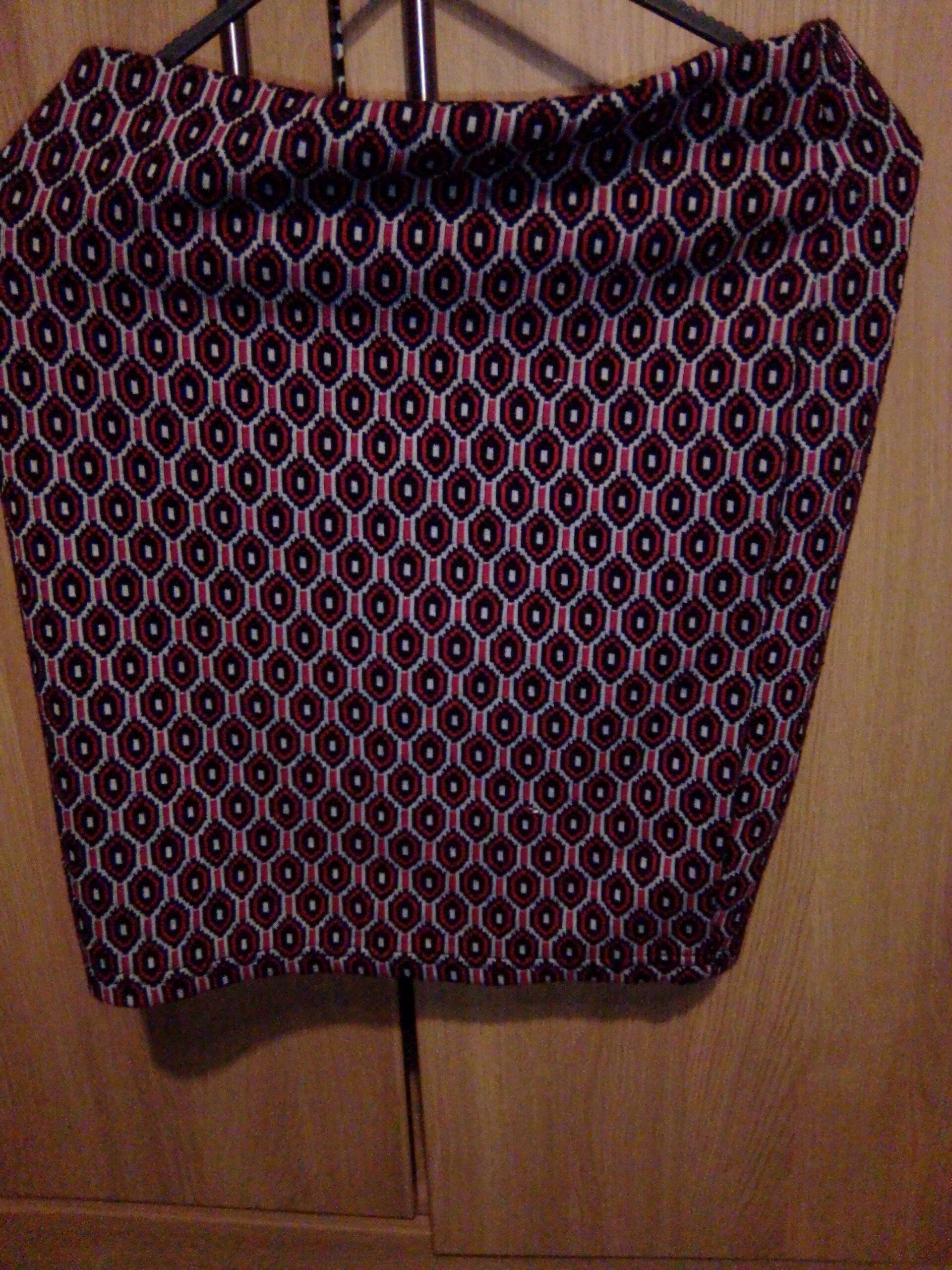 Size 8 short Primark skirt,vgc used,red white n black circular pattern,elasticated waist,length 16 inch,material polyester and elastane,unlined skirt.