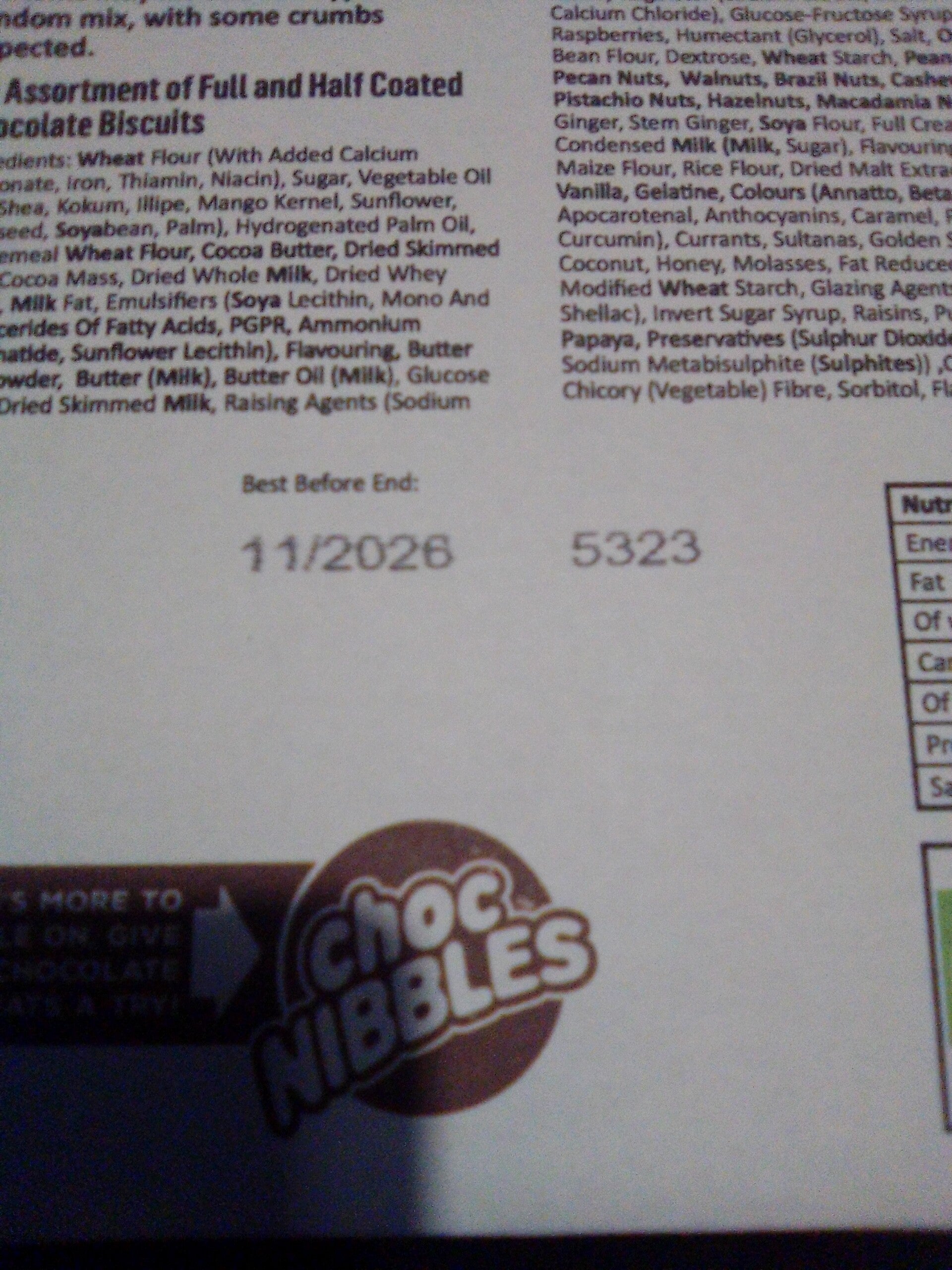 In thank u plastic bag mix if foxes creams chocolate biscuits,and chocolate like penguins biscuits .date 11/2026. Out if date.