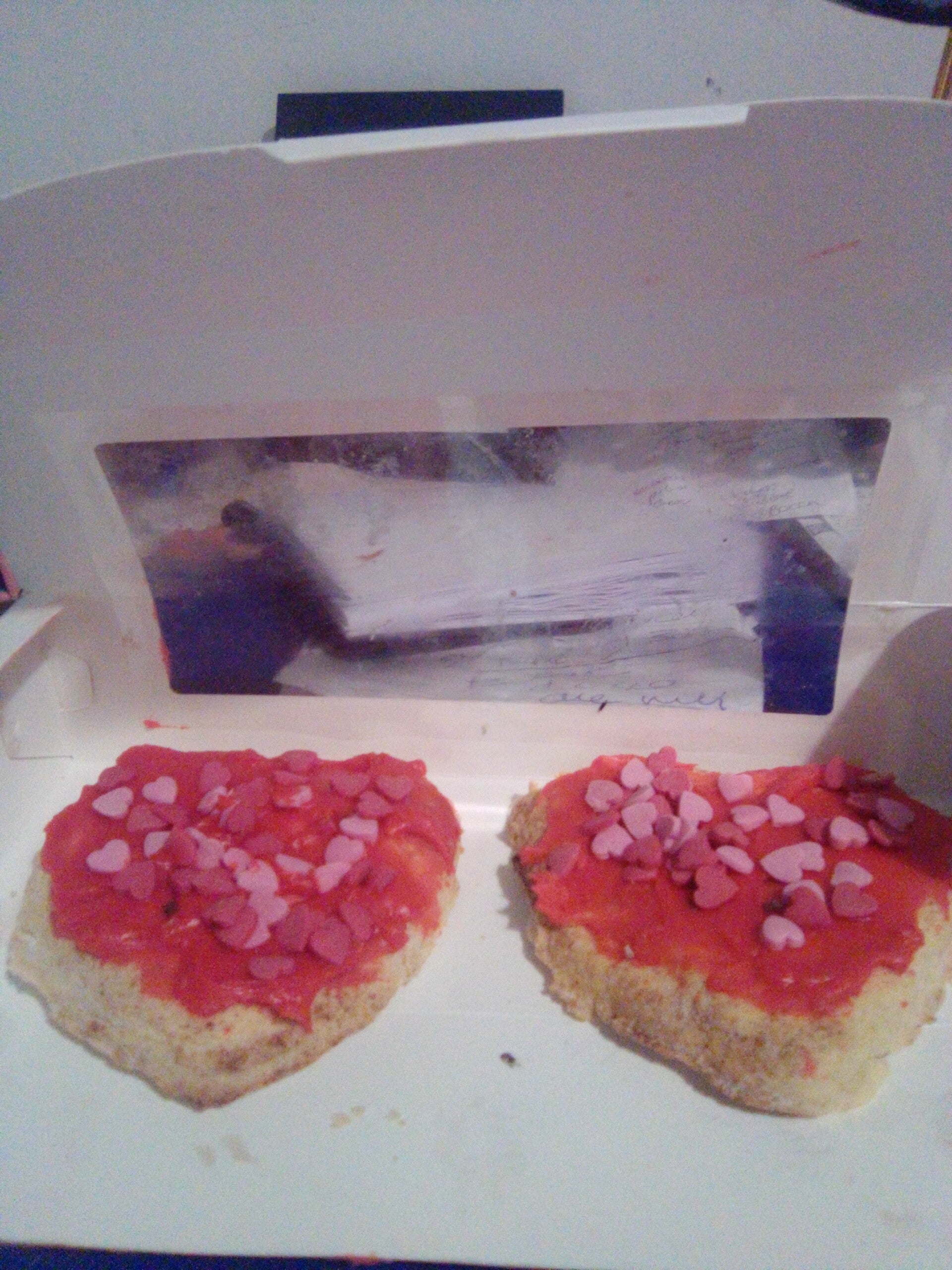 Biscuits hearts, short crusty pastry red frosting n sweetie hearts on